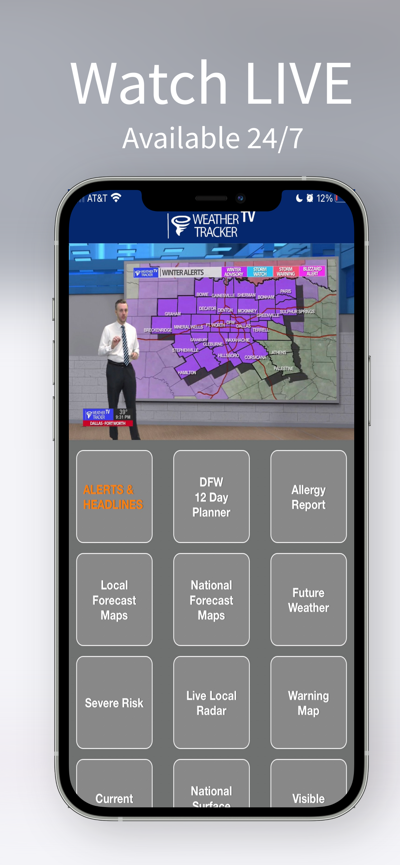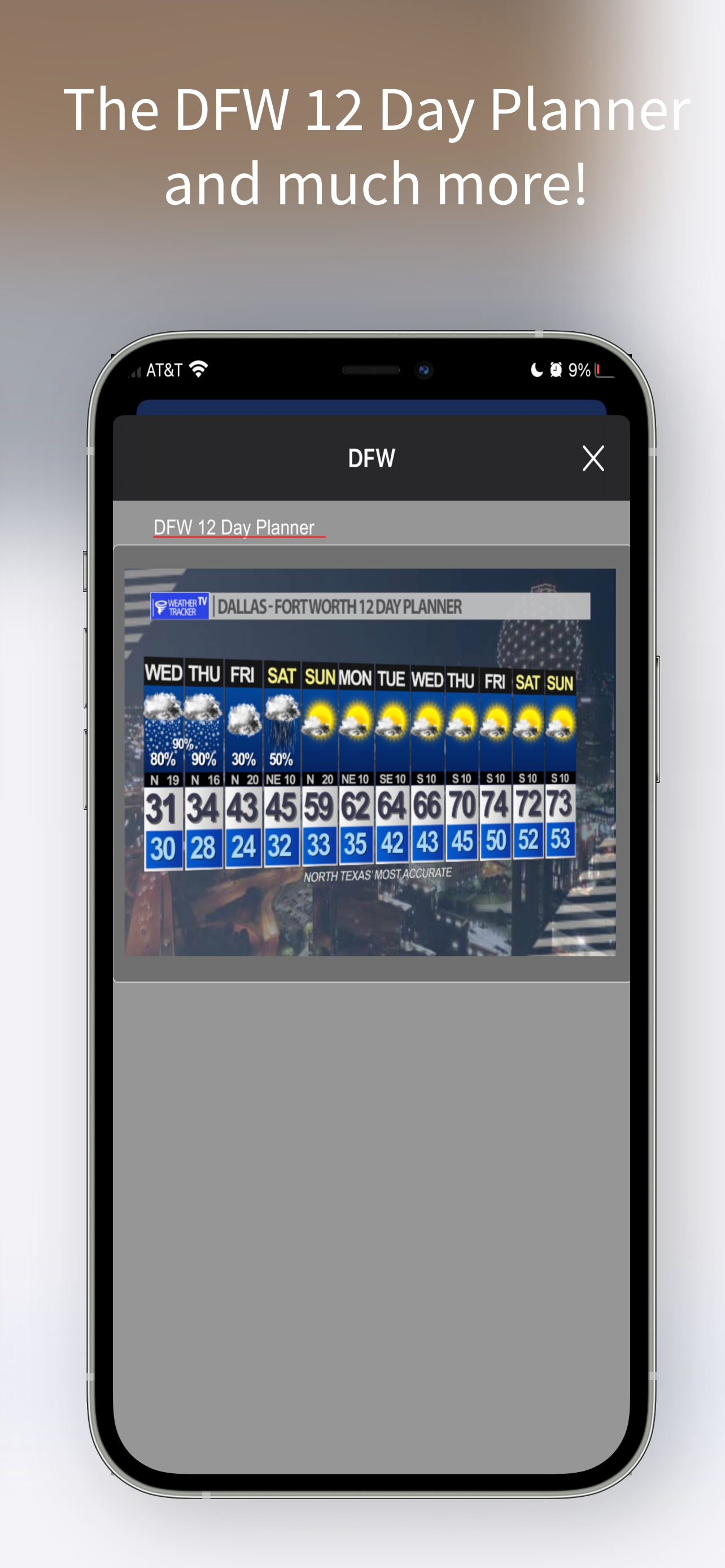 Download the free Weather Tracker TV DFW mobile app for your smart phone or device. The Weather Tracker TV mobile app is the easiest way to keep up with the latest North Texas weather, and receive urgent breaking weather alerts. Features on the app include our live channel, live radar, the DFW 12 Day Planner and much more. The app is available for both Apple and Android devices. Download it today.